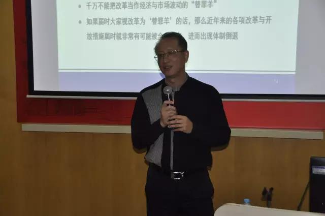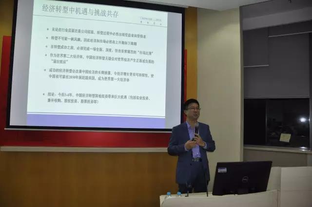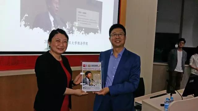 2016年6月4日下午,由bat365在线登录网站注册赠送36全球校友会与共青团复旦大学委员会主办、复旦大学专业学位研究生办公室、bat365在线登录网站注册赠送36研究生会、团学联与复旦经院全球校友会投行俱乐部协办的第六期“复旦经院青年校友讲堂”于201会议室如期举行。本次活动邀请到复旦大学世界经济系1989级校友、博海资本董事长兼投资总监孙明春带来《中国经济转型中的投资机遇》的主题演讲,并特别邀请bat365在线登录网站注册赠送36院长助理严立新老师主持。讲座开始前,bat365在线登录网站注册赠送36副院长刘军梅老师向孙明春校友赠送纪念品。