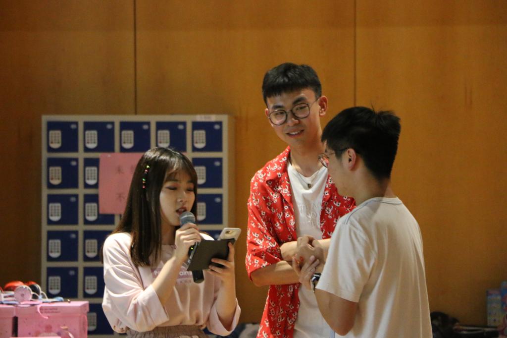 本次晚会有着丰富多彩的游戏环节。第一部分是儿歌板块,既有让同学们来竞猜儿时动画片主题曲名字的游戏,也有由主持人播放上半句由同学们接唱下半句的游戏。有一些歌曲是大家耳熟能详的,同学们纷纷抢答。当然也有一些动画片大家好像并没有在小时候看过,只能遗憾放弃。接下来的游戏也都十分有趣。有人生之旅、传声筒等小组竞赛形式的游戏,也有老板圈套多、猜动画片名等个人比赛的游戏。同学们都玩得不亦乐乎,场面十分热烈。