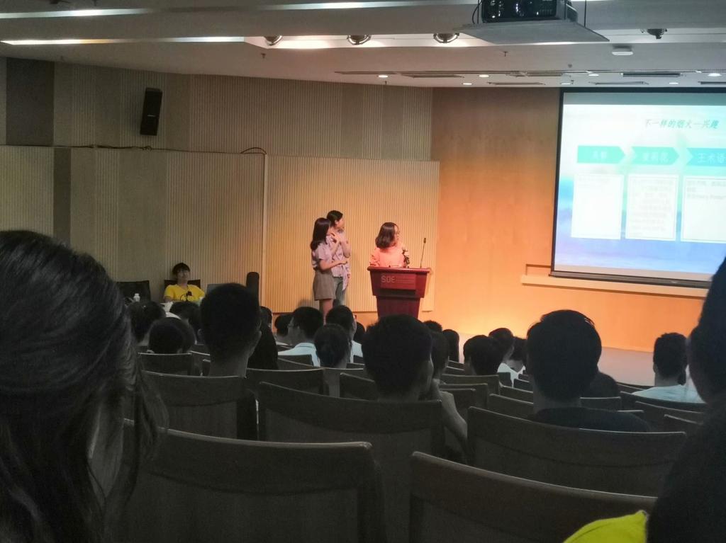 秋雨过后的夜晚凉意袭人,但同学们心中却隐隐有些燥热,对接下来的破冰之旅翘首以盼。同学们早早地来到大金报告厅,安静地等待着活动开始。班会在余思娴辅导员的殷切寄语中拉开帷幕。同学们以寝室为单位轮流走上前台,自我介绍,男寝女寝各显神通,每个寝有每个寝的特色:有的寝用脑洞大开,极具创意的名字吊足了大家的胃口;有的寝通过无与伦比而让人叹为观止的ppt惊艳了观众的目光;还有的寝则是引吭高歌,用余音绕梁、三日不绝之声赢得众人的阵阵喝彩。最令人印象深刻的还数来自全国各地乃至世界各地的小伙伴们对自己家乡独特风情的如数家珍的介绍,虽然不过短短几分钟,却使人如身临其境,神往不已。来自新疆的同学介绍了新疆美食如大盘鸡、手抓羊肉、抓饭、烤羊肉串、炒拉条……话音未落,台下咽口水声清晰可闻;来自陕西的同学则给同学们上了一堂颠覆以往认知的地理课,他如是说道:“很多人以为黄土高原都是黄土,其实不然,像我的家乡就是绿树成荫,一片一片的森林”;还有来自宁夏的同学解答了同学们对宁夏风土人情的疑惑,并善意地提醒大家不要随意地去摸马路上的大象。月光下,秋夜里,三班大家庭的成员们终于了解了彼此,敞开心扉,把酒言欢。最后,时值祖国诞辰七十周年,在余思娴辅导员的提议下,全体同学佩戴团徽,站上了报告台,喊出了对祖国生日的祝福。在这真诚的祝福声中,破冰班会圆满结束。