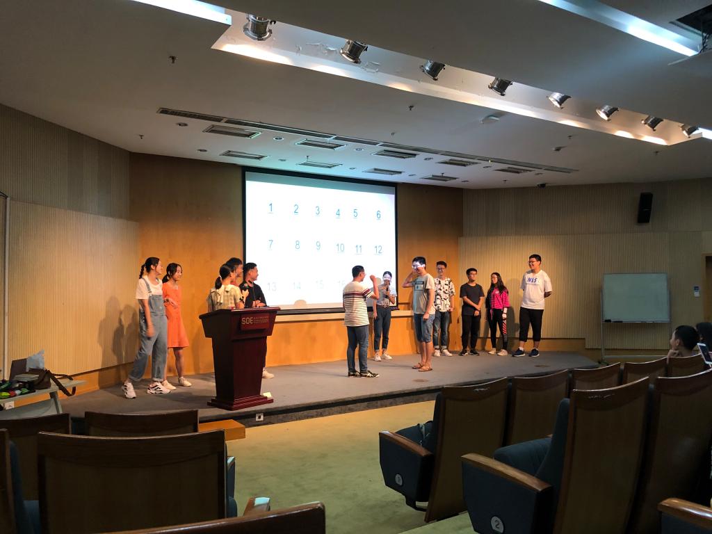 为了联谊活动的成功,同学们八仙过海、各显神通,准备了许许多多的精彩节目与别出心裁的游戏。首先登场的是张达平与侍昊元两位同学,他们联袂演唱的《因为爱情》让同学们感受到了满满的温情。接着,是由付田昊和黄太哲两位同学带来的相声《新闻联播》,他们用诙谐幽默的语言调侃了同学们入学两周以来大学生活的种种趣事,从选课系统、寝室生活,到校园环境、上海交通,大金报告厅不时传来同学们的欢声笑语与阵阵喝彩。