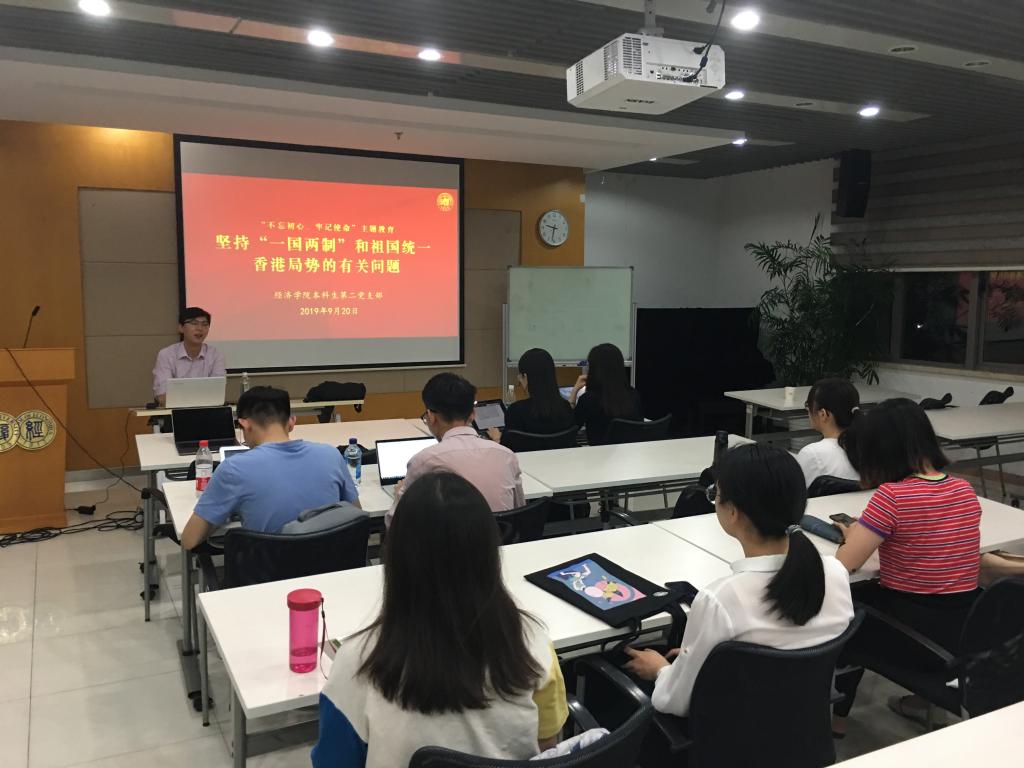 最后,张书记指出我们应该认识到中央方面不允许香港问题触及的三条底线:国家安全与主权、中央权力和基本法权威、对内地的渗透破坏活动。同时,我们作为党支部成员应当从历史、现实与未来战略层次认识到“一国两制“与香港的战略地位。
