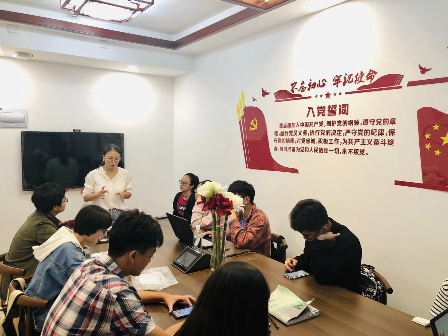 2019年9月24日周二晚8:45,在南区学生公寓一期10号楼党团活动室,19级经济学类2班党章学习小组第一次活动在辅导员杨宁宁老师的指导下圆满进行。