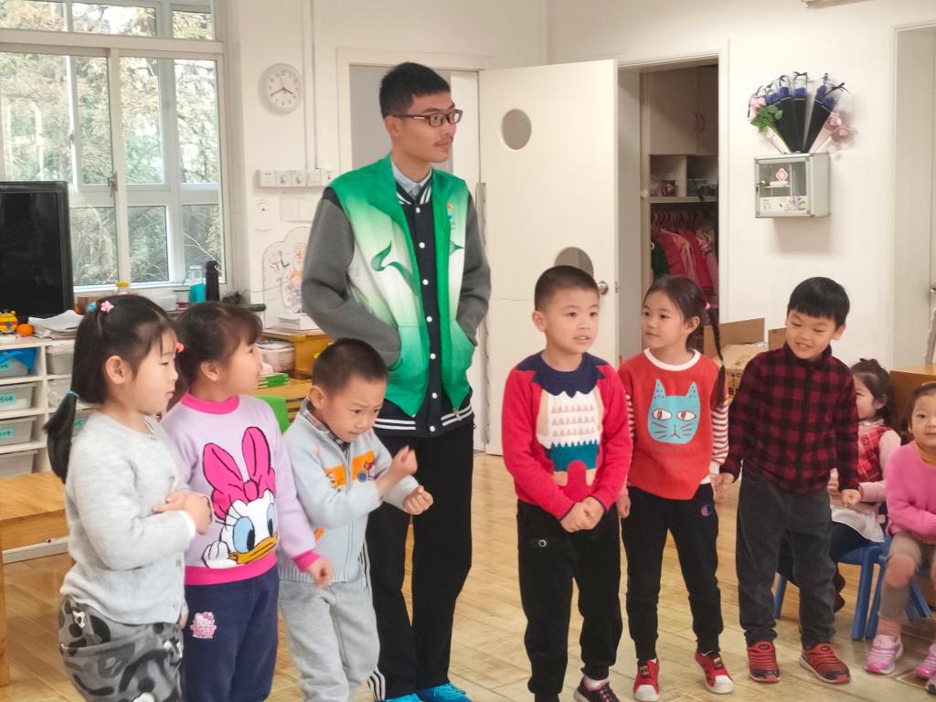 11月19日下午,bat365在线登录网站注册赠送36的四位同学来到杨浦区民星幼儿园,与小朋友们开展了一次愉快的“快乐星期二”活动。活动内容为讲述绘本故事和做游戏。
