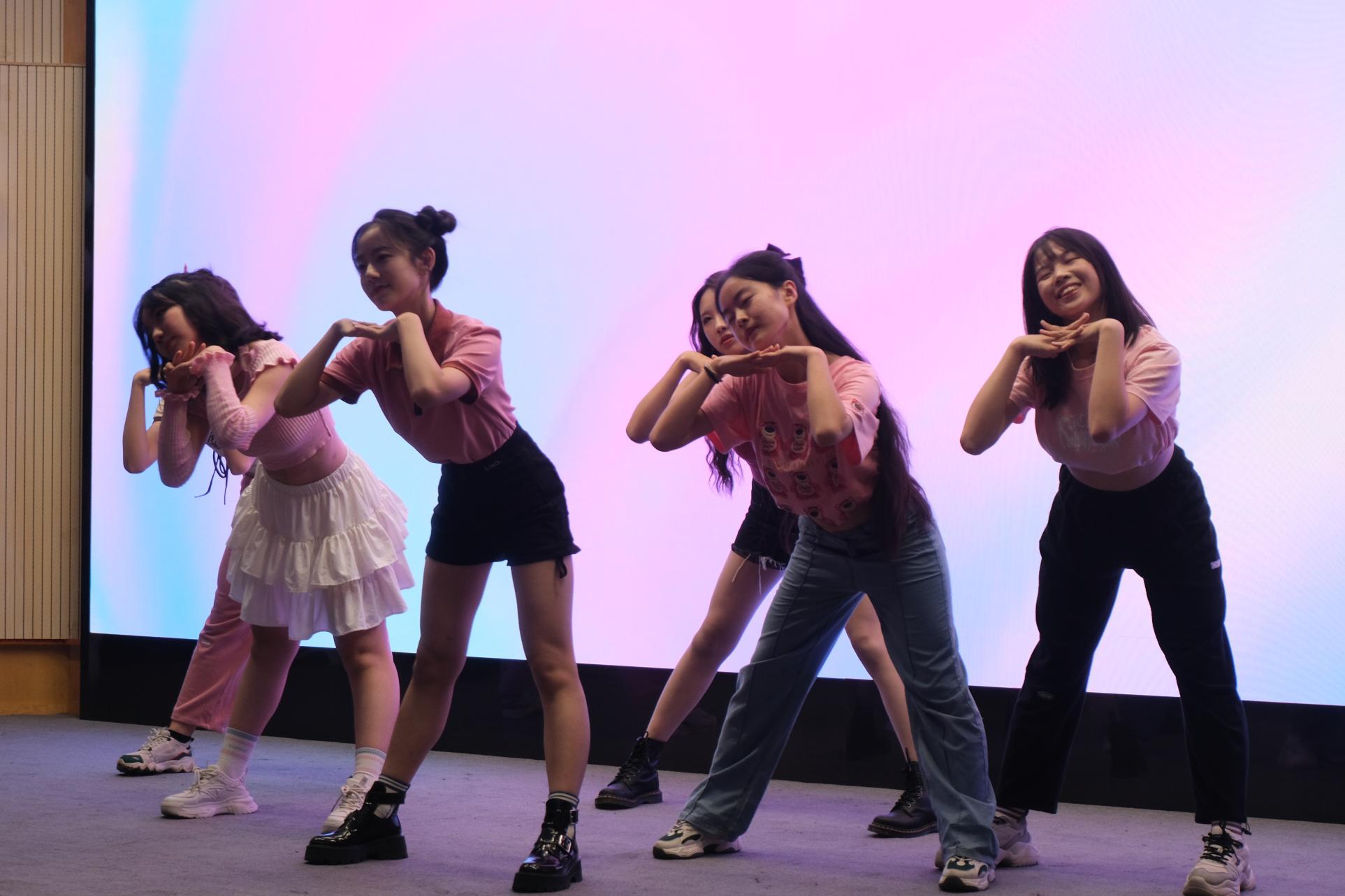 第六个节目是21级金保班带来的舞蹈《Love Dive》。大家都被曼妙的舞姿吸引,享受着这一场视觉盛宴,表演结束后纷纷举起荧光棒为他们投票。