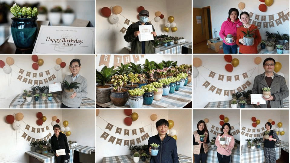 考虑到绿植小巧、精致、观赏价值高且能进化空气、改善办公环境,学院工会决定新学年依旧选择绿植作为老师们的生日礼物。此番,我们准备了品种多样的雅乐之舞、玉坠、君子兰等寓意好、易生长的绿植,同时用气球、彩带将教工之家装扮一新,营造了温馨、美好的生日氛围。与此同时,我们还为老师们准备了学院定制版生日贺卡,将最暖心的祝福和最亲切的关怀送至每一位老师。前来生日角领取小绿植和贺卡的老师们满脸笑颜,沉浸在喜悦之中,纷纷感谢学院的温暖与关怀。