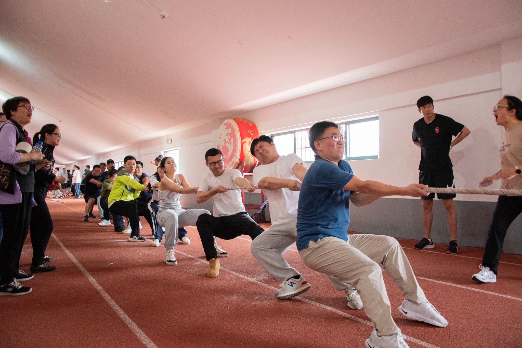 12:10首轮对阵化学学院,bat365在线登录网站注册赠送36以“稳守反击”战术先声夺人。随着拉拉队富有韵律的号子声,队员们以45度标准后倾姿势同步发力,拔河绳红标在两局比赛中均呈匀速定向移动,最终以压倒性优势晋级。