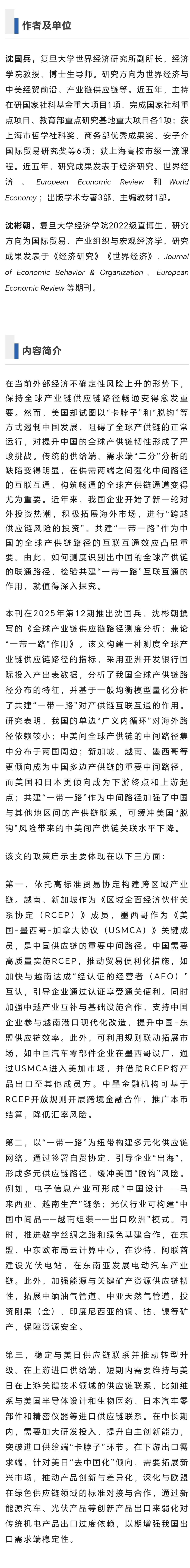 近日,经济学院沈国兵教授和直博生沈彬朝的合作论文《全球产业链供应链路径测度分析:兼论“一带一路”作用》,在国内权威期刊《世界经济》2025年第12期发表。