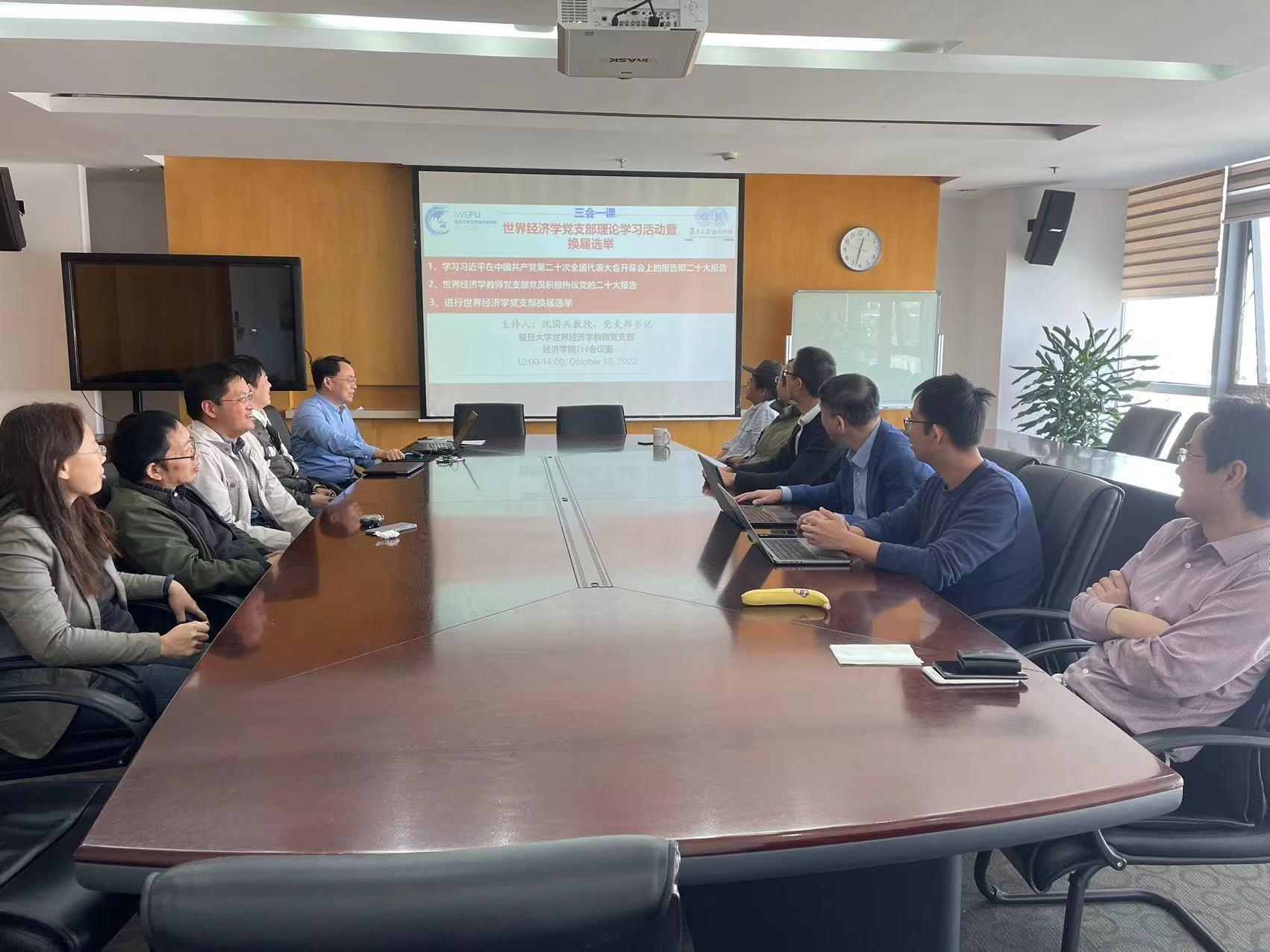 2022年10月18日,为积极响应和贯彻党中央、教育部、复旦大学党委组织部和bat365在线登录网站注册赠送36党委部署的学习党的二十大报告理论教育,复旦大学经院世界经济学教师党支部教师积极学习和热烈研讨了党的二十大报告的关键要点。