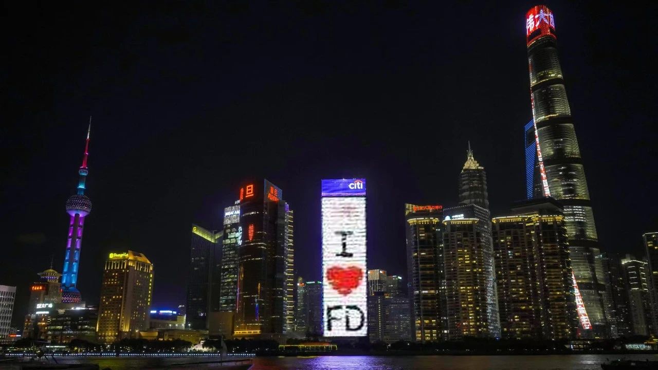 只因城市之窗在外滩花旗大厦的巨幅大屏为高校毕业学子亮灯