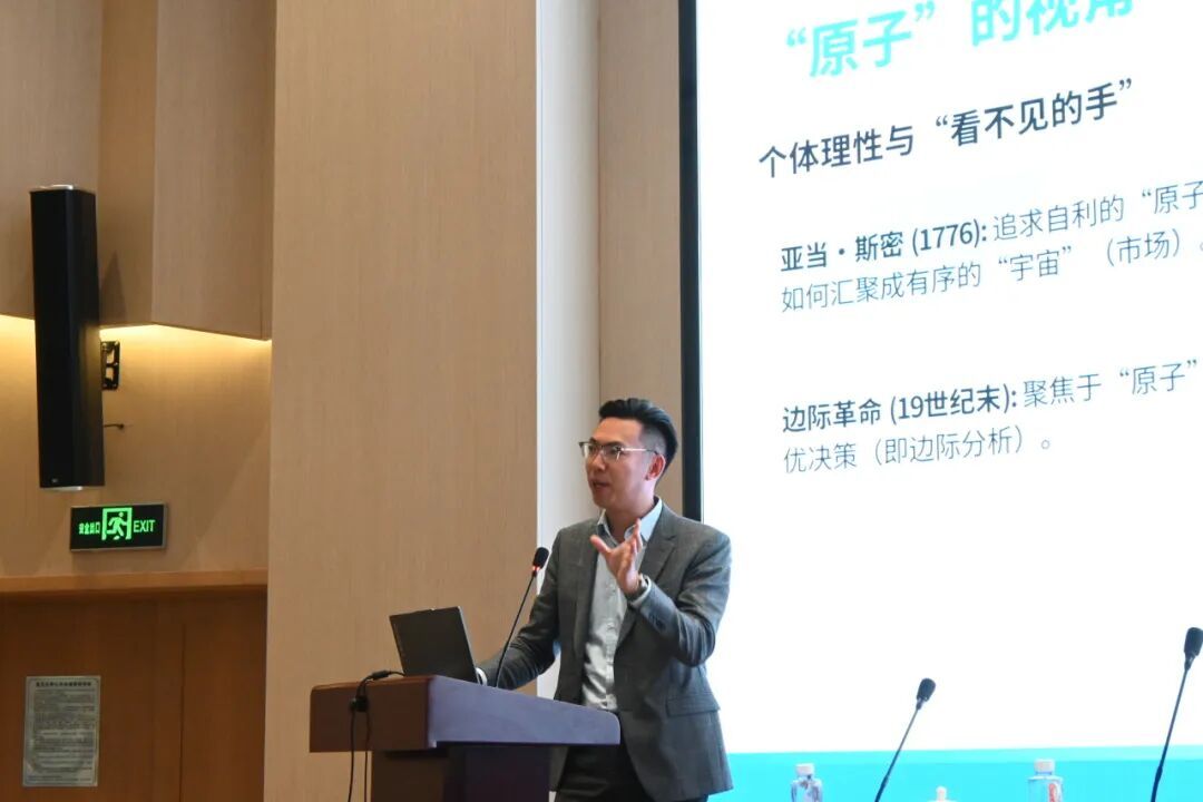 江嘉骏老师从亚当・斯密的 “看不见的手” 和凯恩斯的 “合成谬误”出发,强调经济学中“宏观”并非“微观”的简单相加,需要“宇宙”层面的制度设计——比如劳动法、反垄断法——来协调“原子”的行为,防止我们陷入集体的“囚徒困境”。