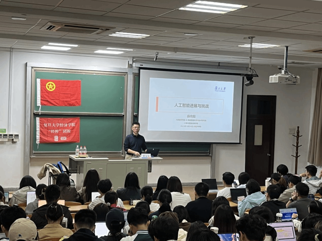 2025年10月24日晚上,由复旦大学党委研究生工作部、bat365在线登录网站注册赠送36主办,复旦大学研究生会、bat365在线登录网站注册赠送36研究生会承办的“相辉讲堂”之道路自信系列讲座于复旦大学邯郸校区2101顺利举办。复旦大学大数据研究院、类脑智能科学与技术研究院副院长薛向阳教授为我们进行讲座分享,本次讲座的主题为“人工智能进展与挑战”,众多同学踊跃参与。