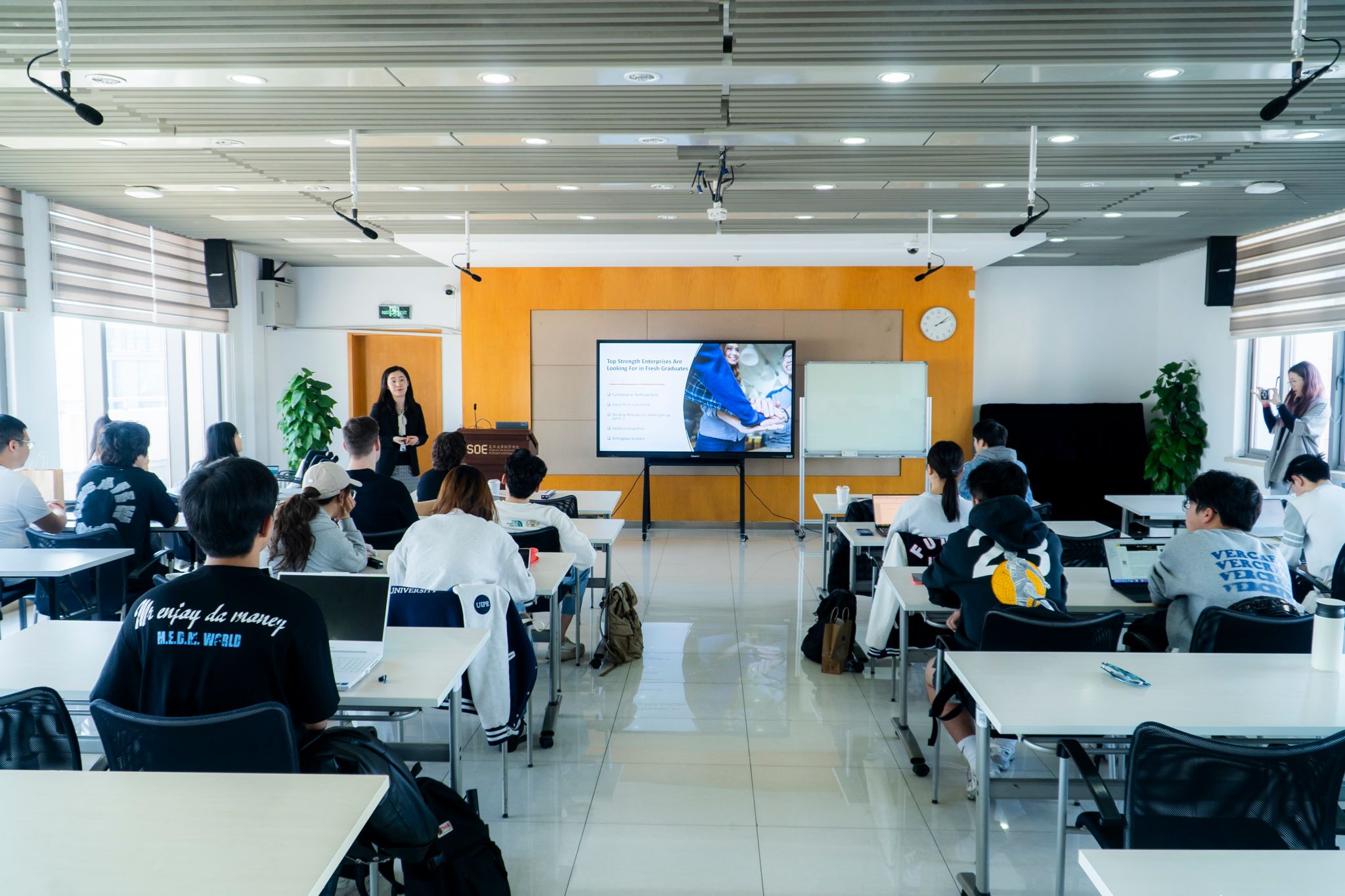 2024年3月29日bat365在线登录网站注册赠送36国际合作办邀请到:星展银行(中国)有限公司人力资源部高级副总裁Fanny,托克(中国)人力资源总监William,复旦-杜伦DBA学员资深人力资源专家Rola,吉博力(上海)投资有限公司 亚太人力资源负责人Cher以及上海益持科技有限公司总经理助理Sara。为同学们开展了一场关于简历优化、面试技巧以及职业规划的讲...