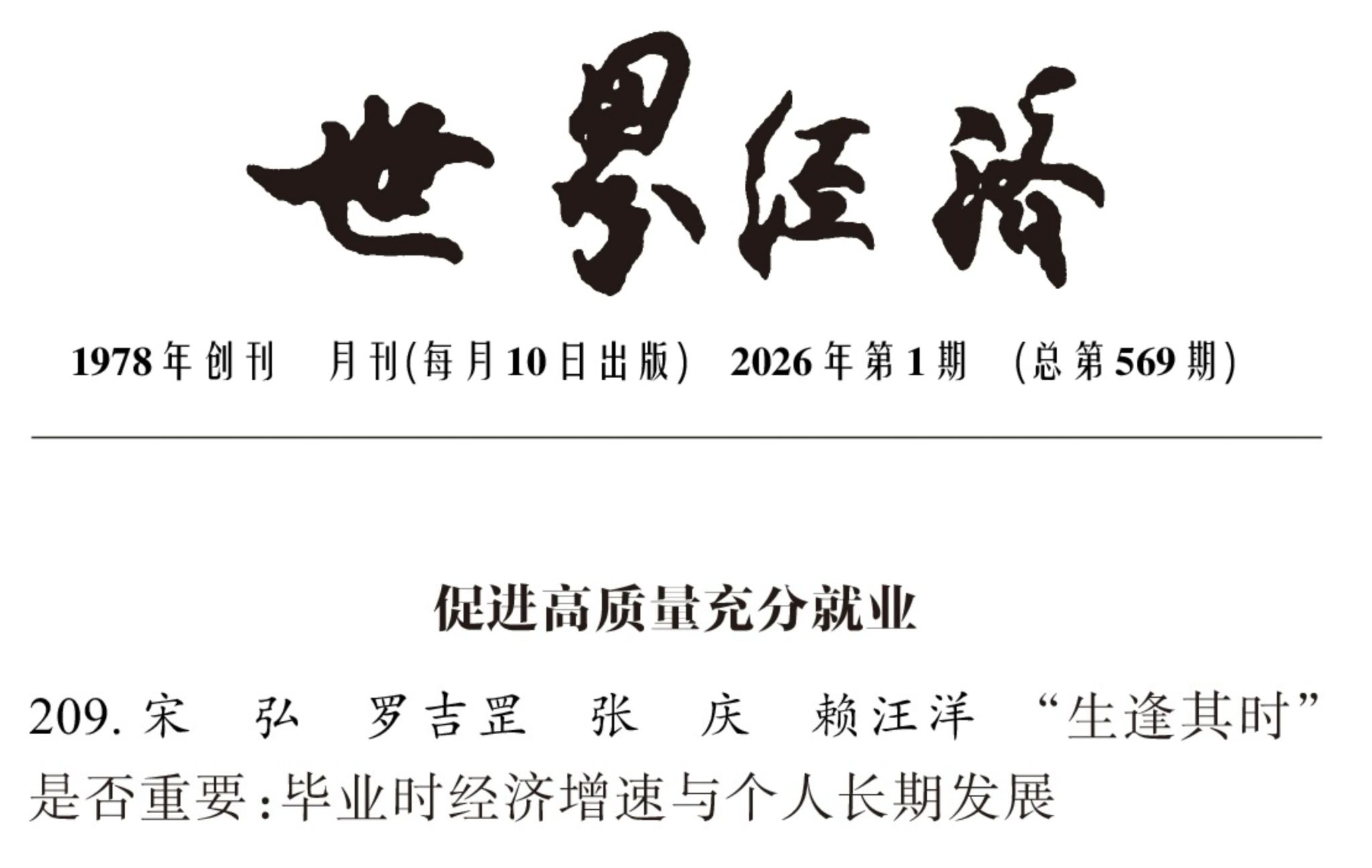 近日,bat365在线登录网站注册赠送36宋弘教授团队研究成果《“生逢其时”是否重要:毕业时经济增速与个人长期发展》在《世界经济》2026年第1期正式发表。合作者为清华大学经济管理学...