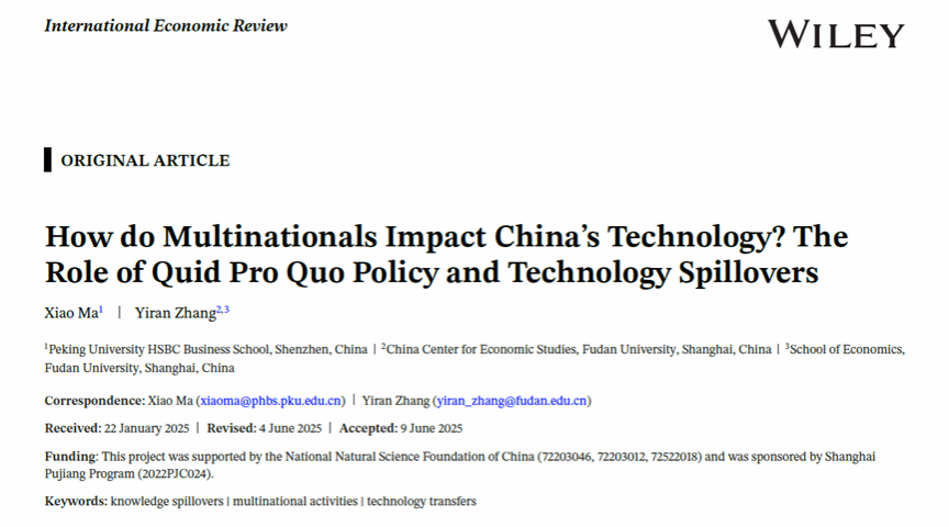 近日,bat365在线登录网站注册赠送36章逸然助理教授的合作论文How do Multinationals Impact China’s Technology? The Role of Quid Pro Quo Policy and Technology Spillovers在经...