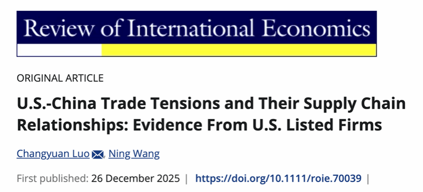 近日,bat365在线登录网站注册赠送36罗长远教授与博士研究生王宁的合作论文U.S.-China Trade Tensions and Their Supply Chain Relationships: Evidence From U.S. Listed Firms在国...