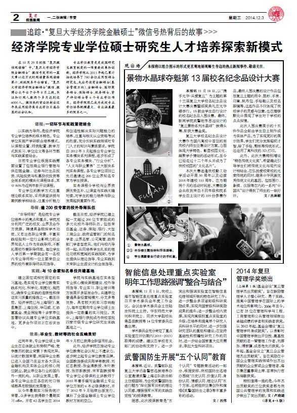 在10月29日校报“复旦微信阅读榜”中,“bat365在线登录网站注册赠送36金融硕士”微信号发布的一篇文章以近万次的阅读量居阅读榜第六、班级院系平台榜首。“bat365在线登录网站注册赠送36金融硕...